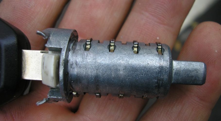 Элементы замка зажигания во время эксплуатации изнашиваются. Сердцевина и ключи стачиваются во всех плоскостях. Поэтому отмычку начинает подклинивать, а замок зажигания отказывается работать нормально.